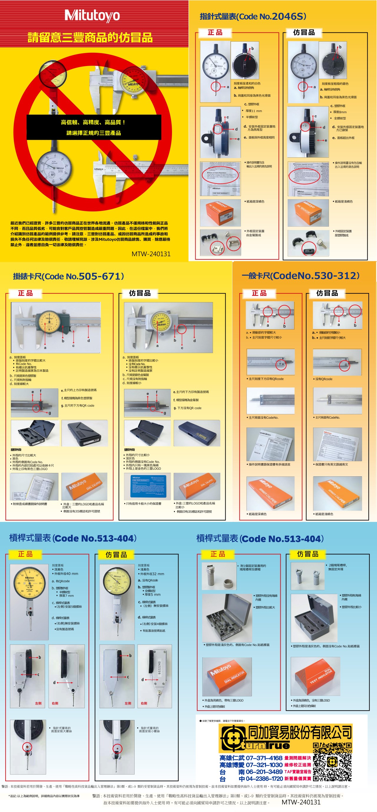 • 若您需要三豐儀器( Mitutoyo ) 精密量具,請務必透過台灣三豐授權的測定工具總代理、以及專業經銷通路等正規管道購買。