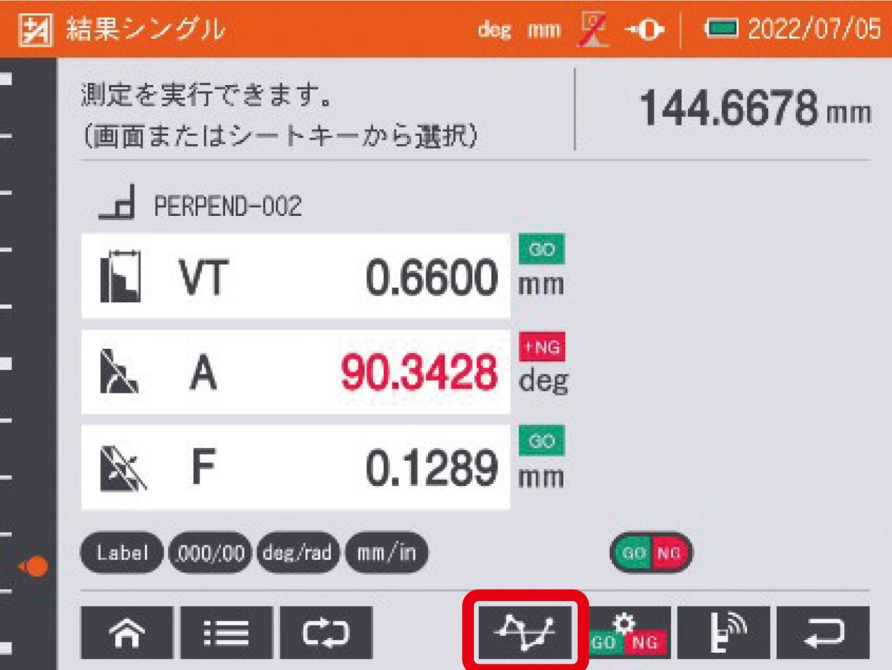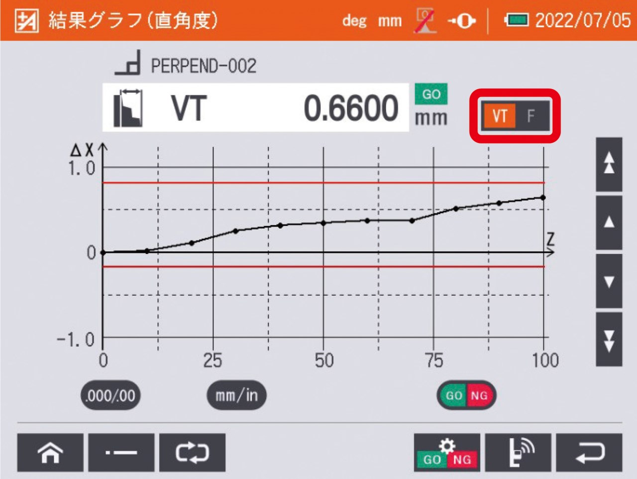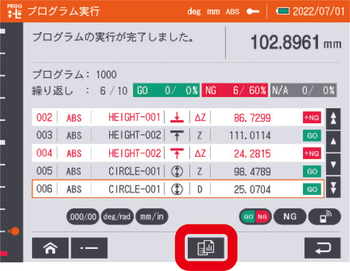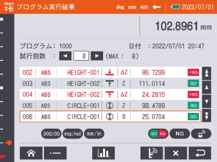 ◆即時顯示量測結果的公差比對、合格判定(GO, NG)。