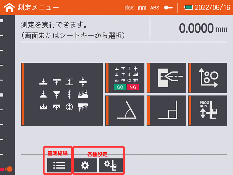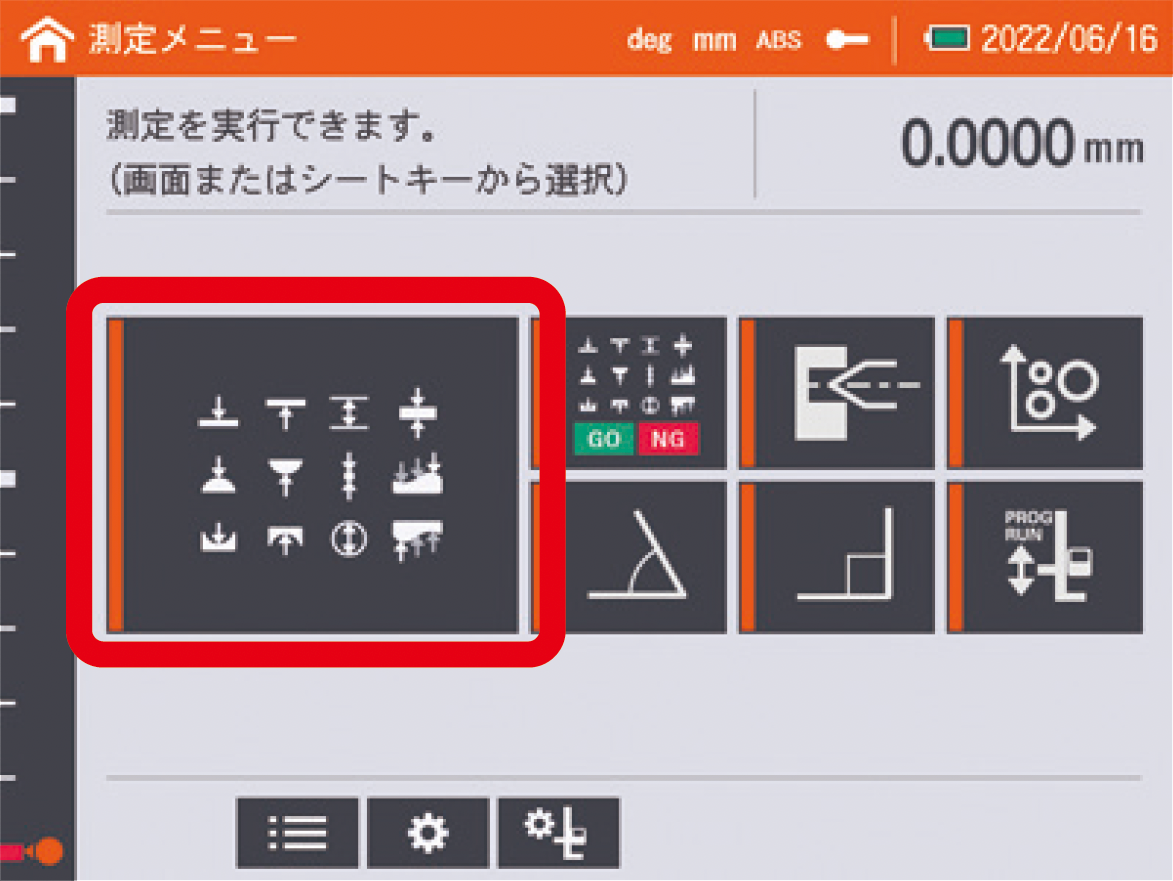 二次元原點設定、X/Y軸設定、元素叫出、極座標叫出、座標差計算、二次元距離計算、2元素交差角度計算、3元素交差角度計算、節圓計算