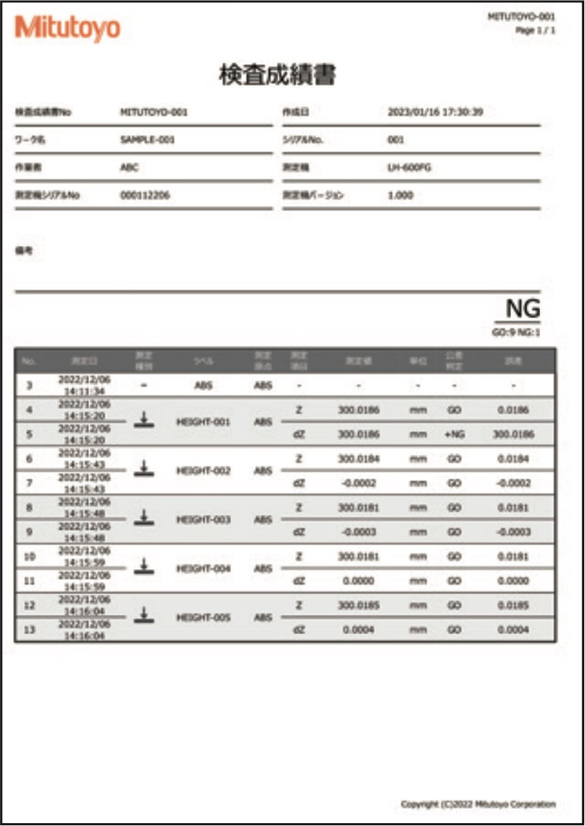 ◎支援量測資料管理的輸出功能